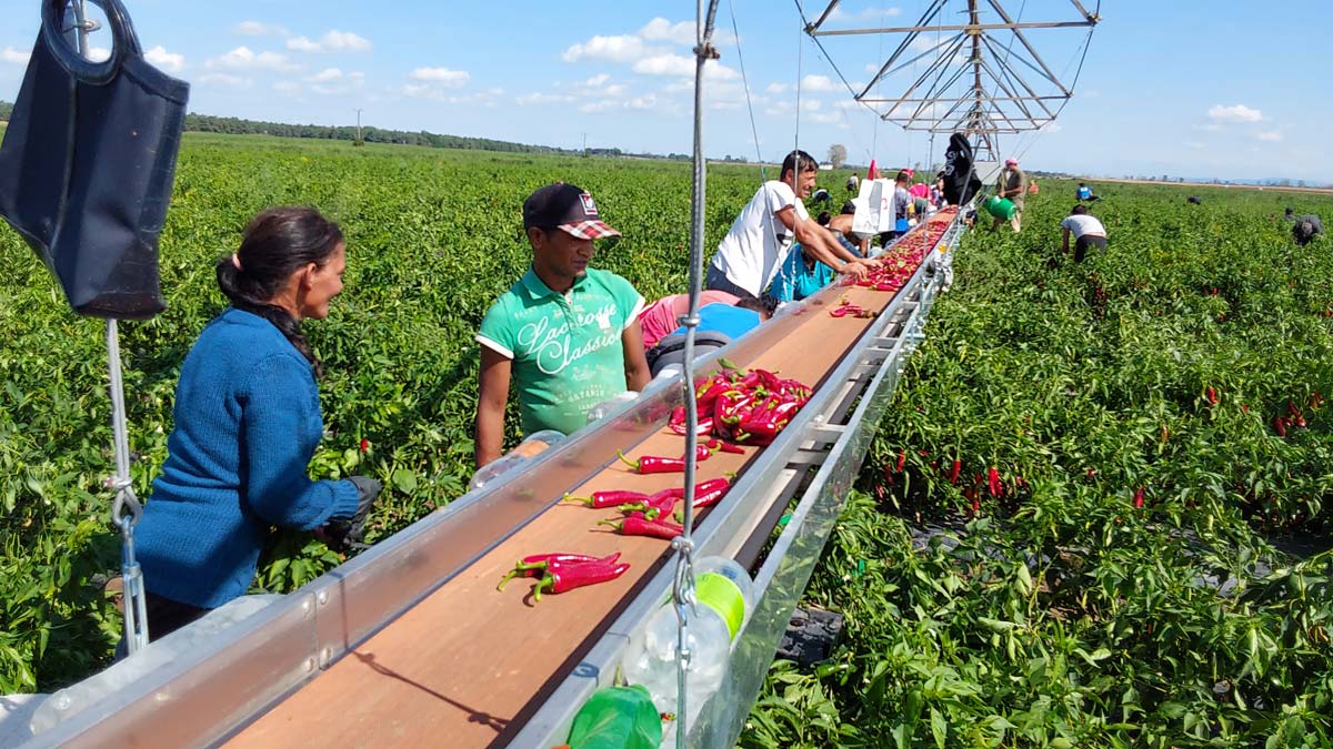 A képek és videók között látható „Paprika szalag“ a szántóföldi zöldségtermesztés betakarítási munkáit megkönnyítő önjáró berendezés.